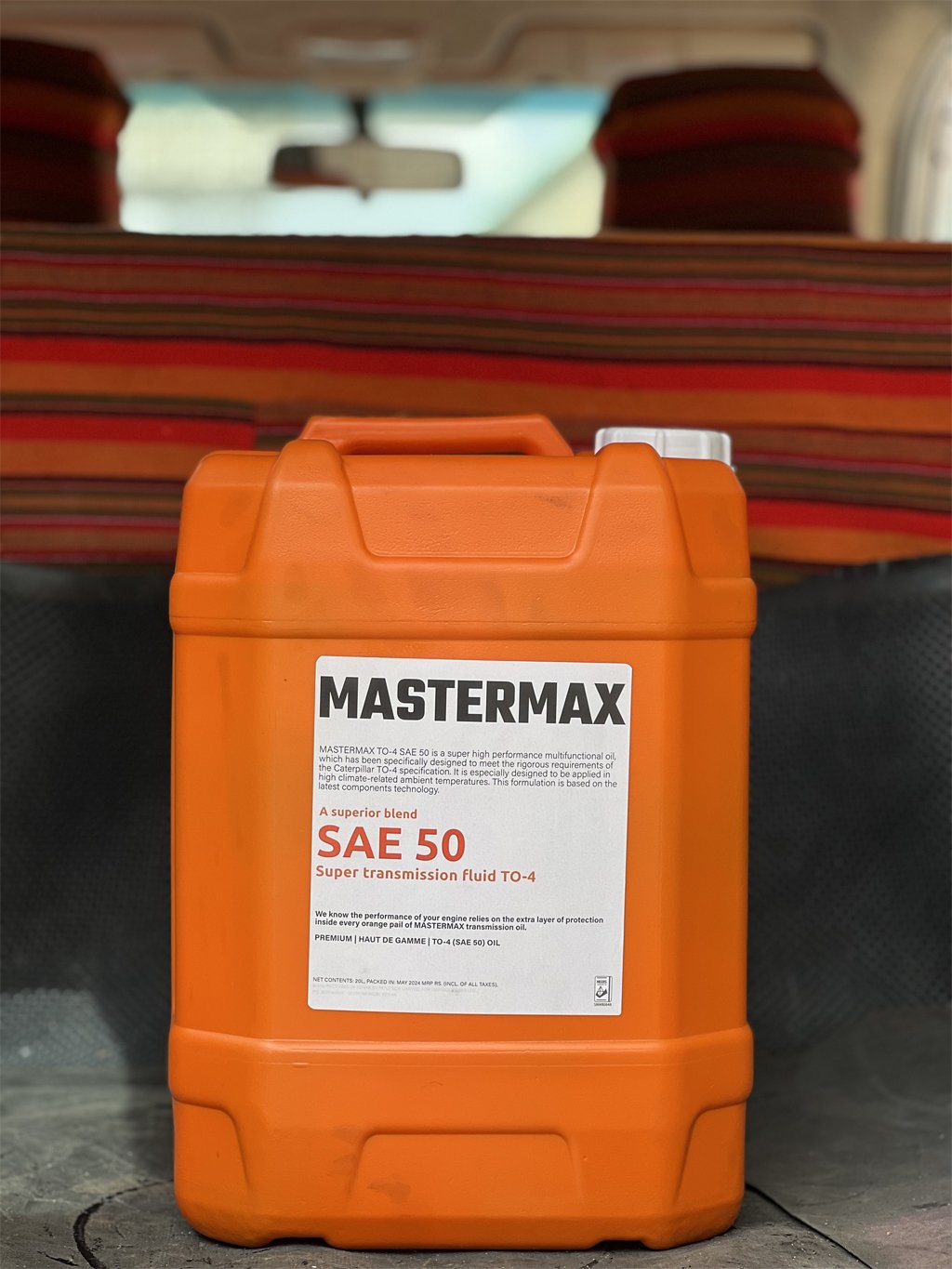Mastermax SAE 10W, SAE30 TO-4, and SAE50 MT-1 GL4 are transmission oils designed for heavy-duty off-highway equipment, providing clutch protection, wear resistance, and smooth power shift performance.